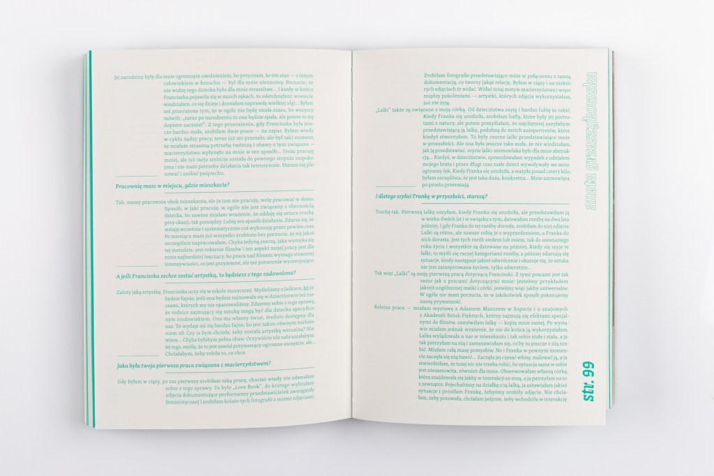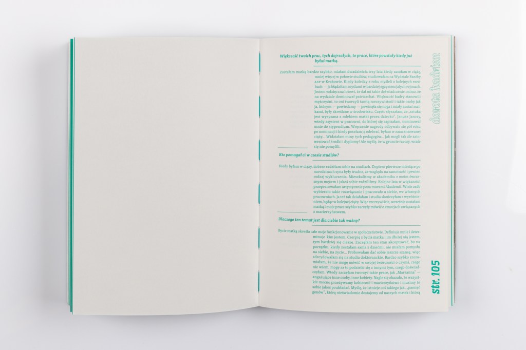 Rozmowy z artystkami: Bettina Bereś, Dorota Bernacka, Alicja Bielawska, Dominika Borek, Agnieszka Drwal-Dziurawiec, Pola Dwurnik, Teresa Gierzyńska, Aneta Grzeszykowska, Dorota Hadrian, Zuzanna Janin, Zofia Karpowicz, Barbara Kasprzycka, Bogdana Ligęza-Drwal, Justyna Łuczaj-Salej, Cecylia Malik, Małgorzata Markiewicz, Barbara Porczyńska, Katarzyna Sobczuk, Teresa Starzec, Agula Swoboda, Klaudia Urbanek-Kękuś, Marta Wojciechowska wstęp: Aleksandra Grzemska, Magdalena Ujma, Agnieszka Bartak-Lisikiewicz
