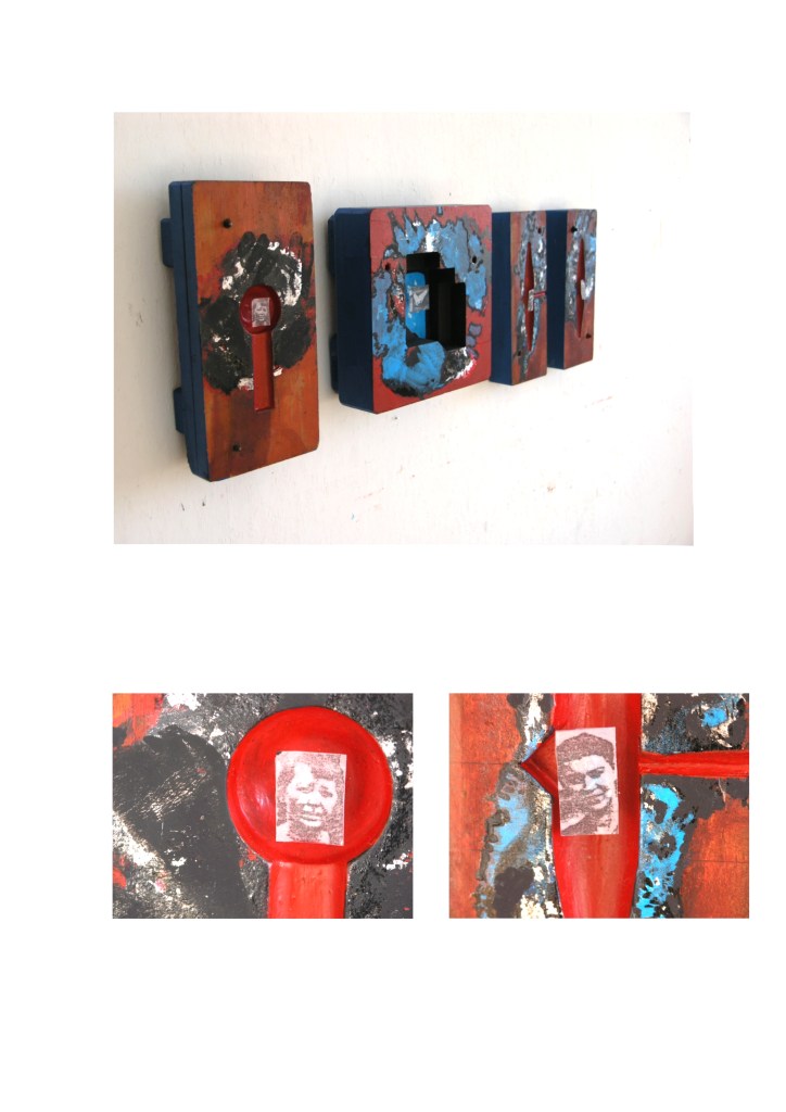 drewno, kalka, akryl, wymiar całości 100 x 30 x 15 cm