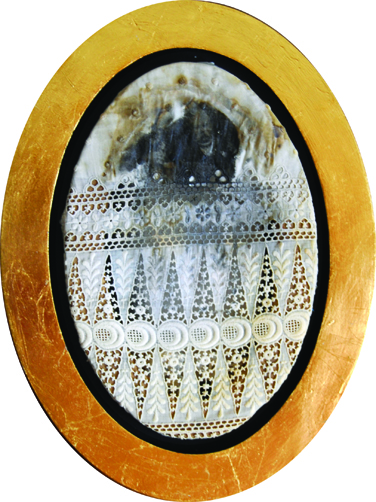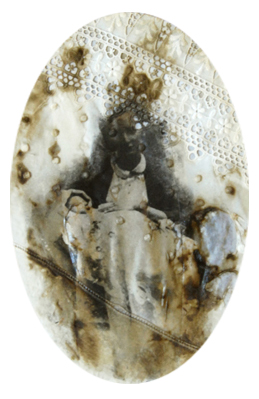 Medaliony 2009 emulsja światłoczuła, fragmenty ubrań, sklejka, metal, wymiar jednego elementu 30 x 40 cm
